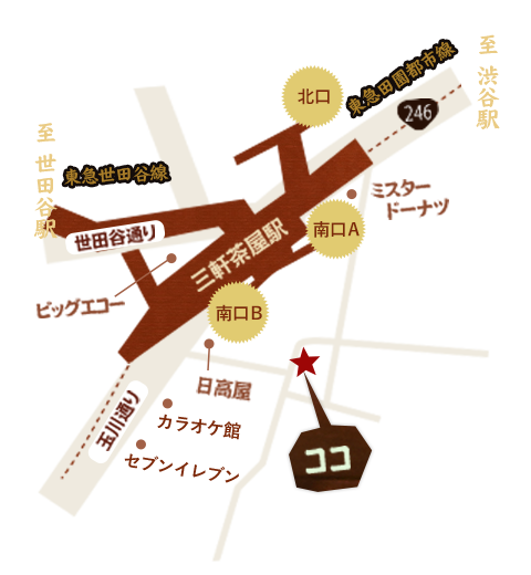 | ■アクセス | 東急田園都市線・世田谷線 三軒茶屋駅 南口Bより徒歩1分 |